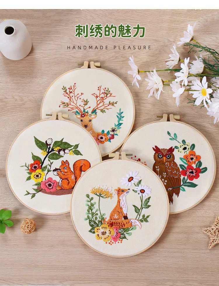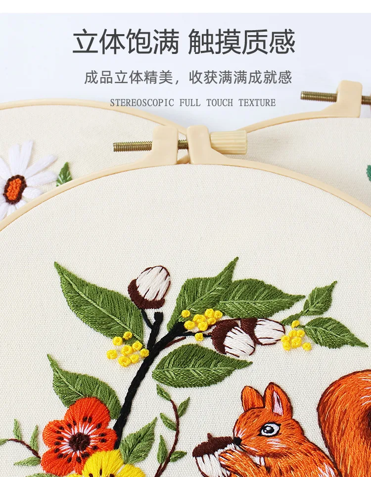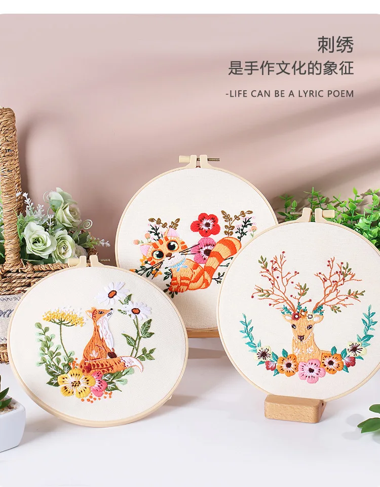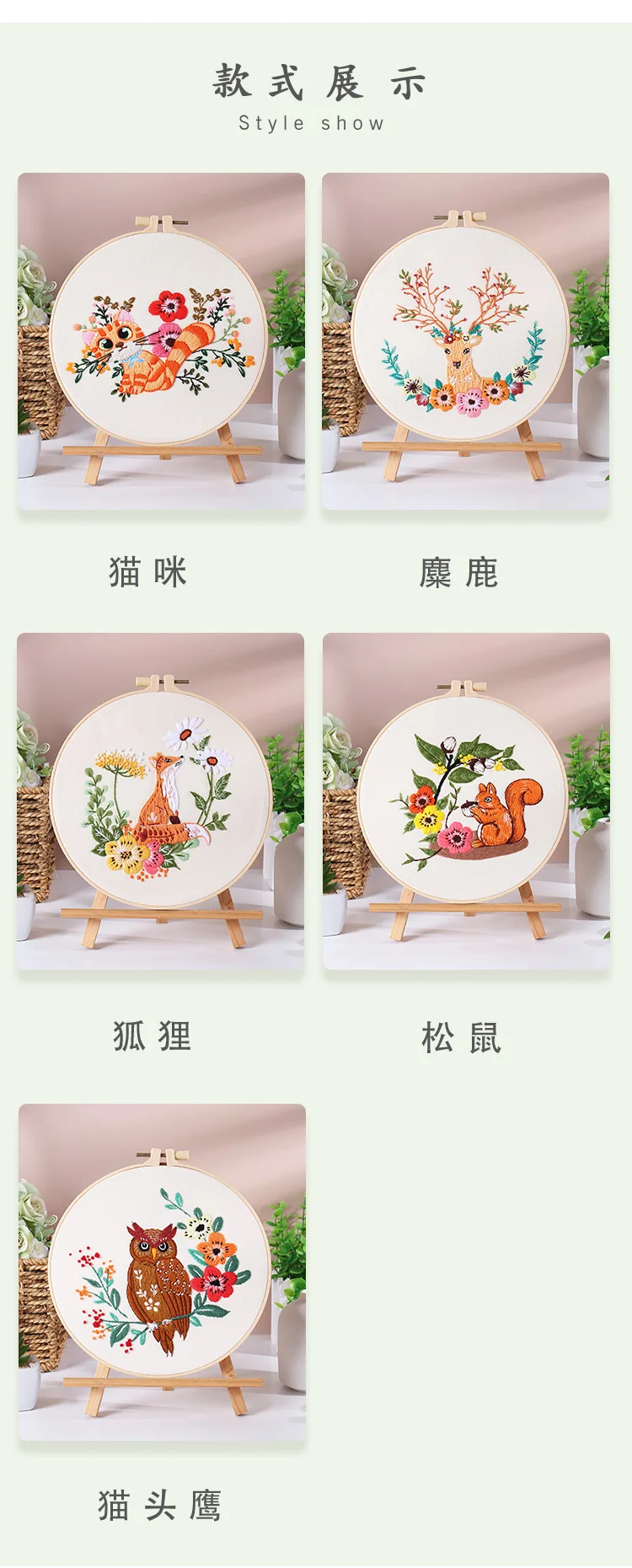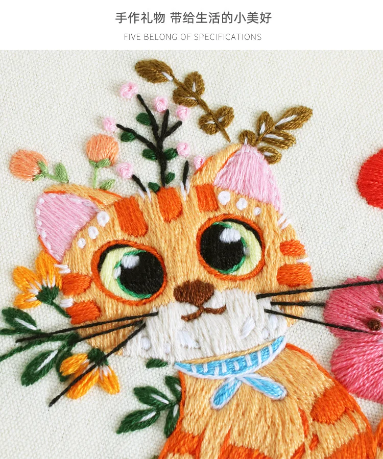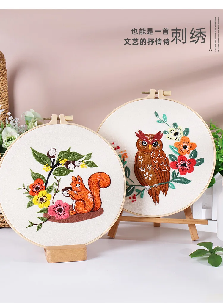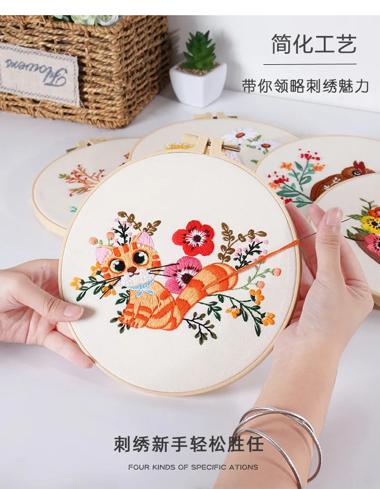 Embroidery Starter Kit with Flower Bird Patterns and Instructions, DIY Adult Beginner Cross Stitch with Pattern Plant Cat