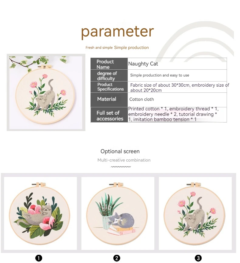 2024 New Embroidery Diy Material Package Kit Cat Pattern Cross Stitch Table Painting Hanging Picture