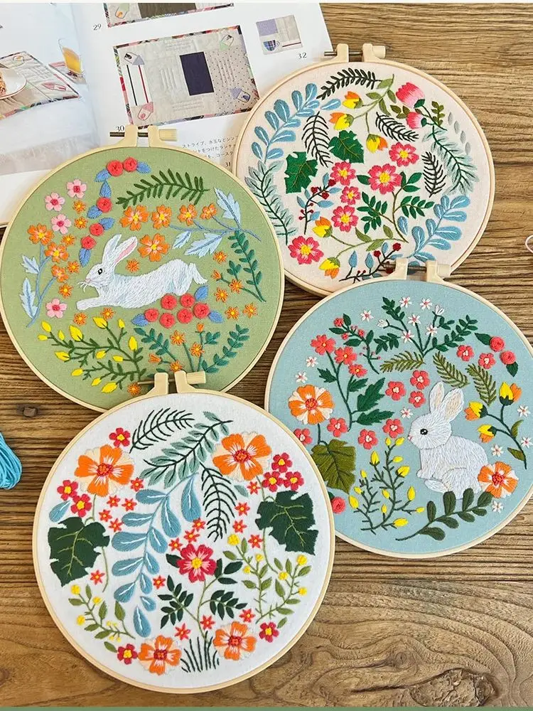 Rabbit Flower Embroidery Kit with Instructions Needles Thread Cross Stitch Kit for Beginner Floral Kit DIY Craft Easter Decor