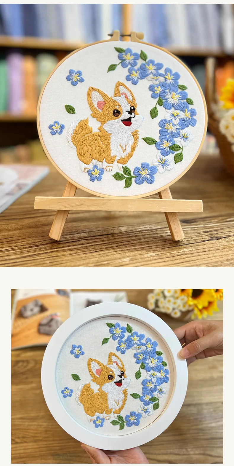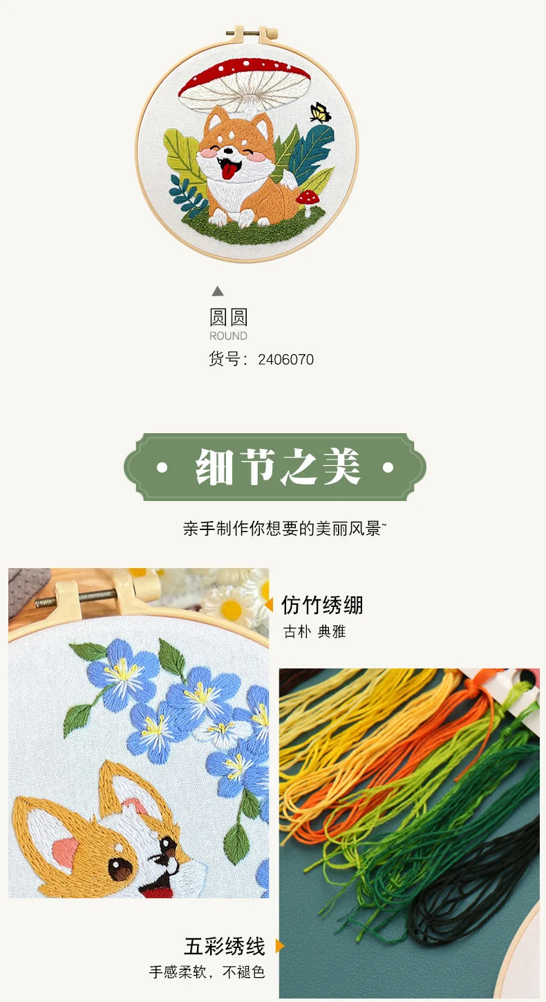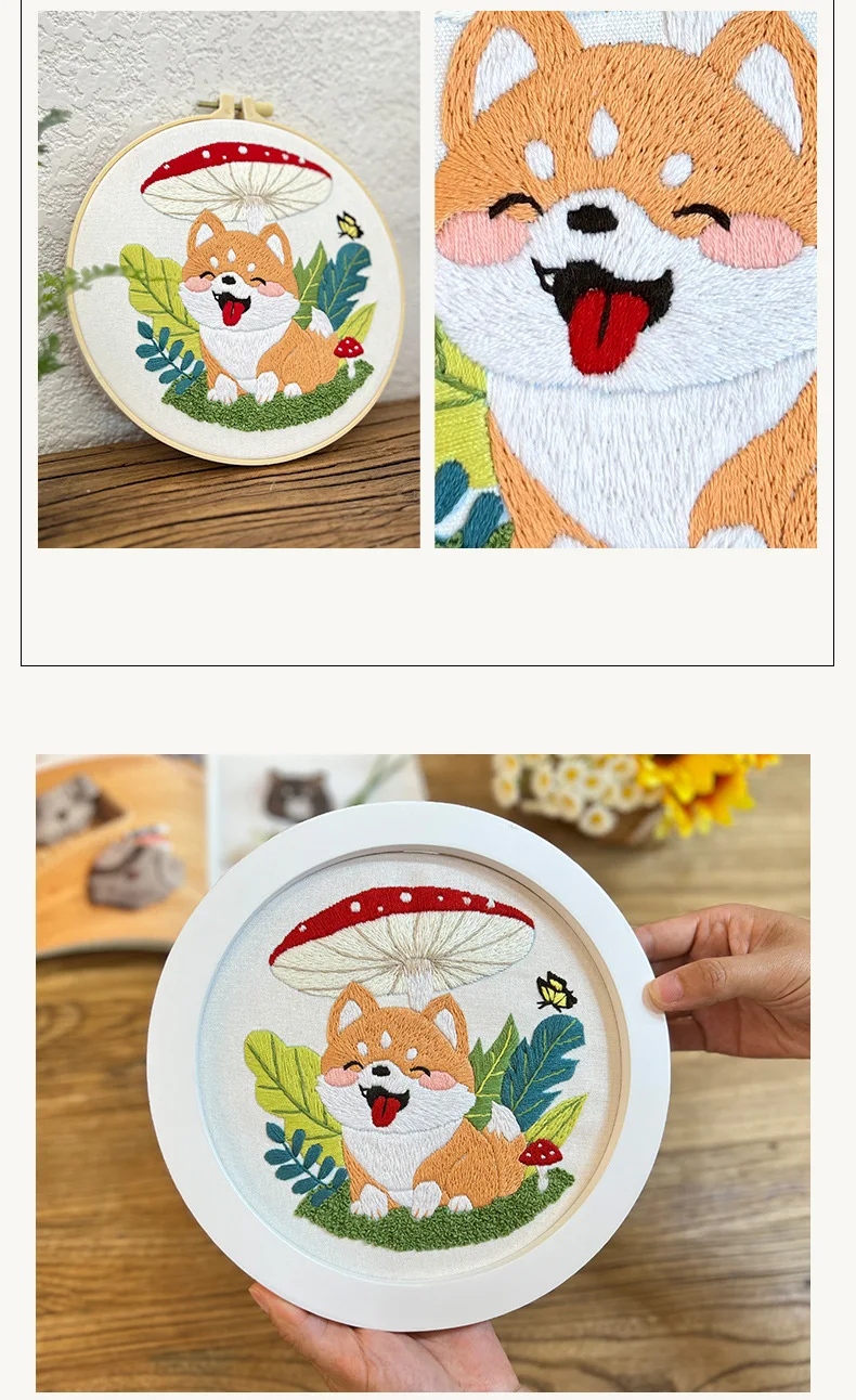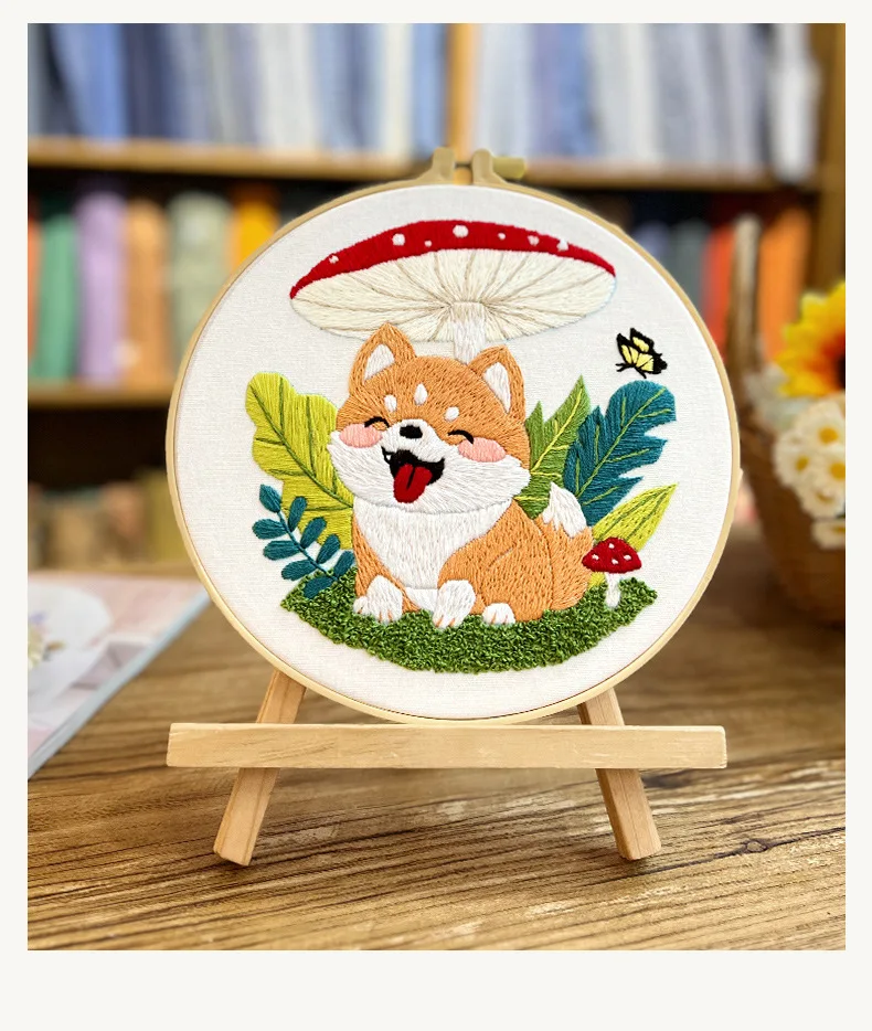 Flower Dog Embroidery Kit for Adults Kids Beginners Hand Embroidery Starter Kit Counted Stamped Cross Stitch Needlepoint Kit